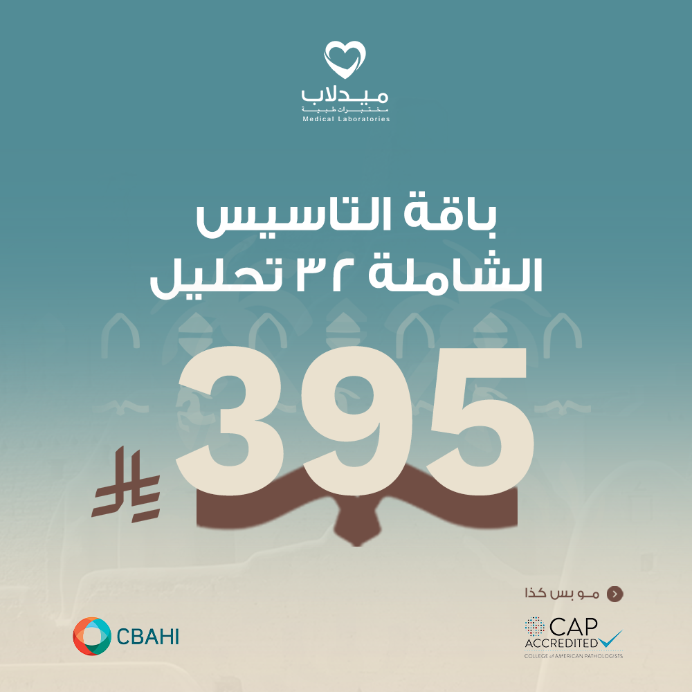 باقة تحتوي على 32 تحليل تشمل وظائف الكلى، الكبد، صورة الدم كاملة مع الحديد و مخزون الحديد، فحص الدهون، فحص الأملاح و المعادن و الزنك، الغدة الدرقية، السكر التراكمي و السكر الصائم بالإضافة إلى فيتامين ب12 و فيتامين د – this package includes 32 biomarkers for Kidney, Liver, Thyroid Functions. Also it covers the Complete Blood Count with Iron, Ferritin and Lipid Profile, Diabetic check up, Minerals and Zinc with Uric Acid Levels. adding Vitamin D and Vitamin B12